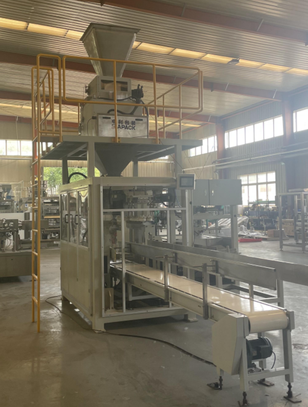 این دستگاه برای بسته بندی مواد دانه ای در کیسه های بزرگ بافته شده یا کیسه های کاغذ کرافت یا کیسه های فیلم پلی اتیلن مناسب است و محدوده وزن بسته بندی 25 کیلوگرم تا 30 کیلوگرم است.