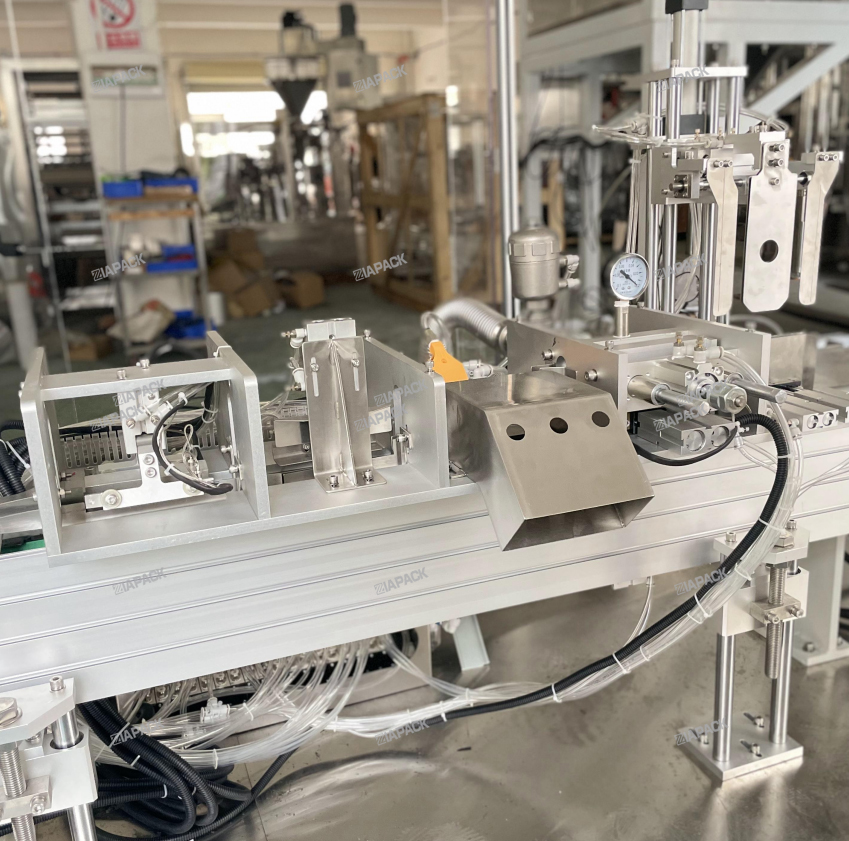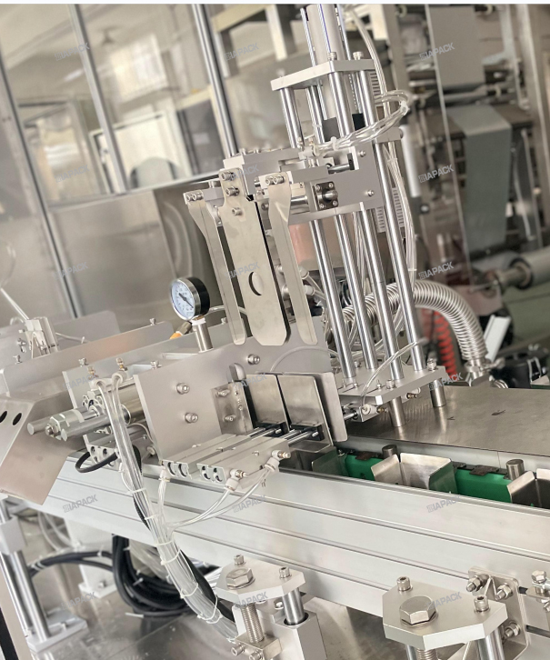 این دستگاه طراحی ویژه ای برای ساخت کیسه گوست با برچسب بالایی دارد. پس از انداختن کیسه پر با محصول روی این دستگاه. این دستگاه کیف را حمل می کند، یک بار دهان کیسه را تا می کند و سپس برچسب را می چسباند. قاب دستگاه ساخته شده توسط SUS304 .PLC و صفحه لمسی توسط برند زیمنس اتخاذ می شود. و قطعات پنوماتیک از برند SMC استفاده می کنند. اجزای اصلی الکتریکی از برند Omron و Schneider استفاده می کنند. این دستگاه با دستگاه بسته بندی اتوماتیک کار می کند تا به برچسب بالای کیسه تمام شده برسد. این دستگاه می تواند به طور خودکار به عملکرد برسد. از برچسب جدا شده , ارسال برچسب . آشکارساز برچسب و فشار دادن برچسب .
