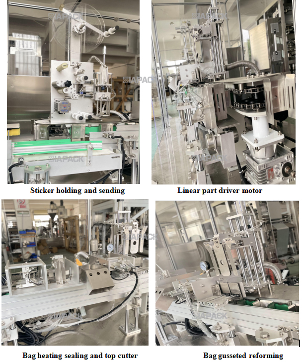 دستگاه کیسه را حمل می کند، یک بار دهان کیسه را تا می کند و سپس برچسب را می چسباند. قاب دستگاه ساخته شده توسط SUS304. PLC و صفحه نمایش لمسی توسط برند زیمنس اتخاذ می شود. و قطعات پنوماتیک از برند SMC استفاده می کنند. اجزای اصلی الکتریکی از مارک Omron و Schneider استفاده می کنند. .