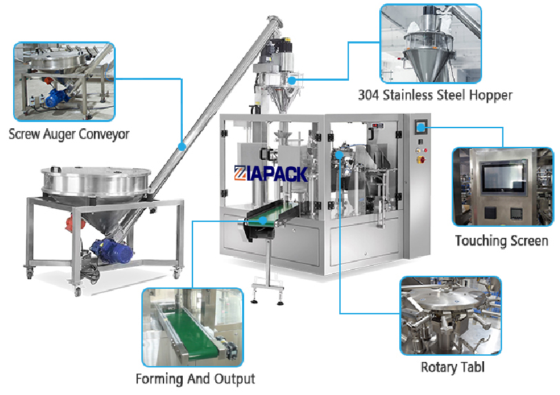مجهز به Augur Filler و Screw Elevator، آن را به طور گسترده ای برای بسته بندی پودر، مانند پودر مواد شوینده، پودر شیر، آرد، ادویه، پودر کوکو، قهوه قهوه و غیره استفاده می شود.